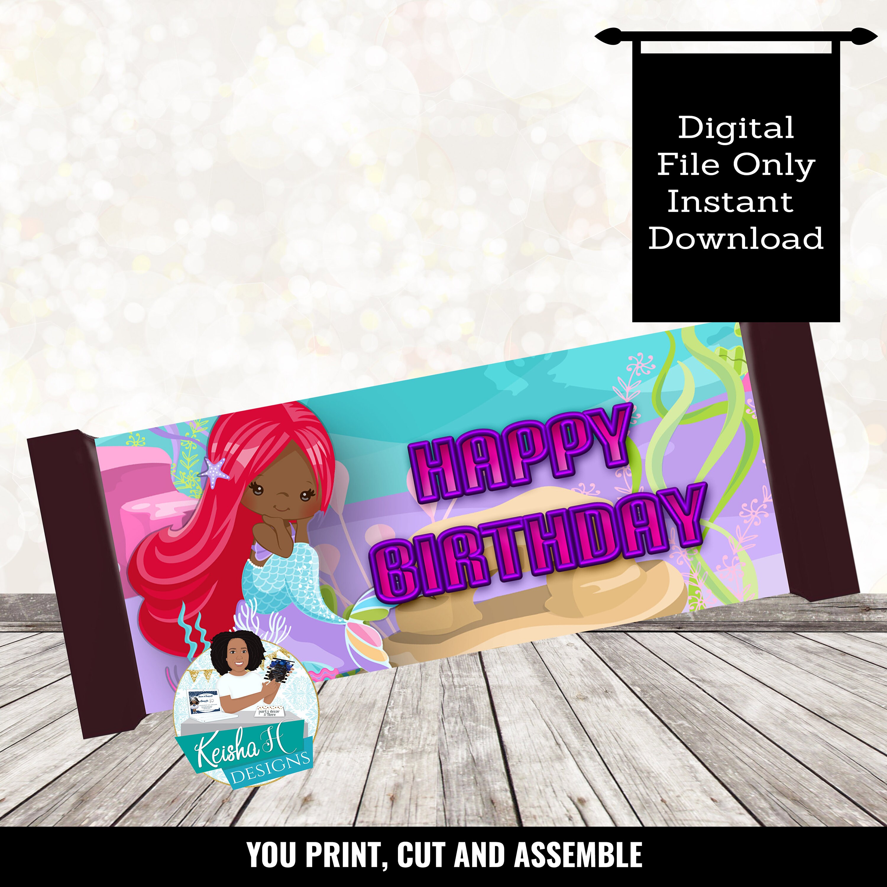 African American Black Mermaid Happy Birthday Candy Wrapper Etsy